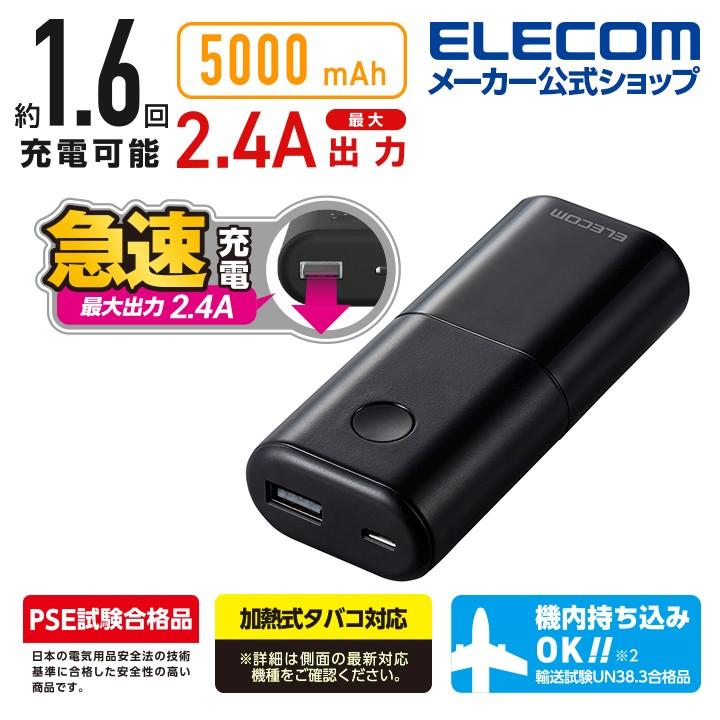 エレコム モバイルバッテリー リチウムイオン電池 スマホ 電子タバコ対応 おまかせ充電 急速 5000mah 2 4a Usb A出力1ポート Pse適合 De M13l 5000bk エレコムダイレクトショップ 通販 Paypayモール