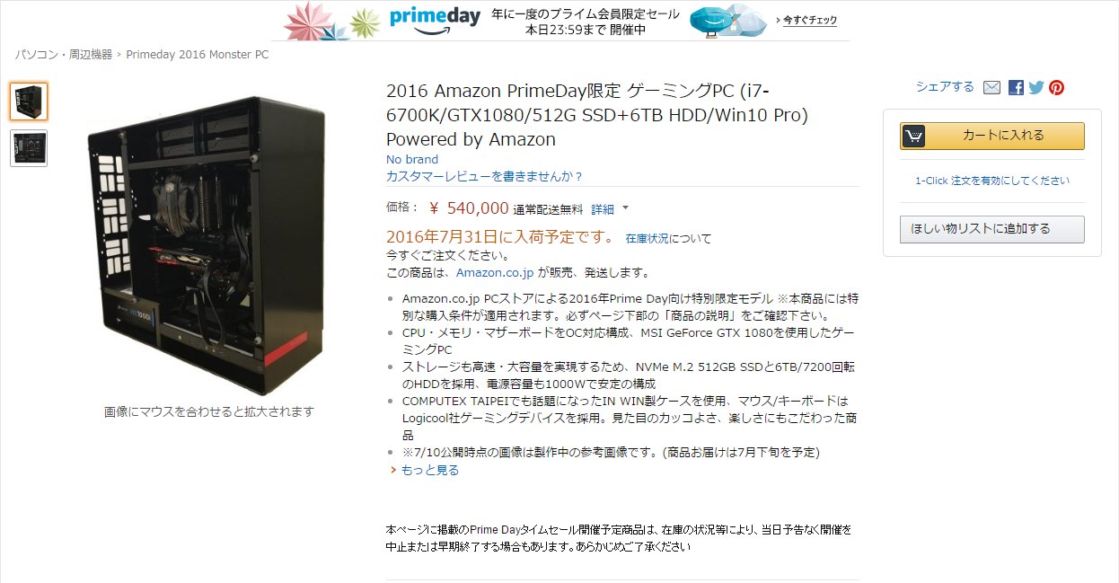 プライム会員限定特売セール プライムデー2016 のラインナップが明らかに 価格不明の Vr Ready ゲーミングpc は7月12日22時販売開始