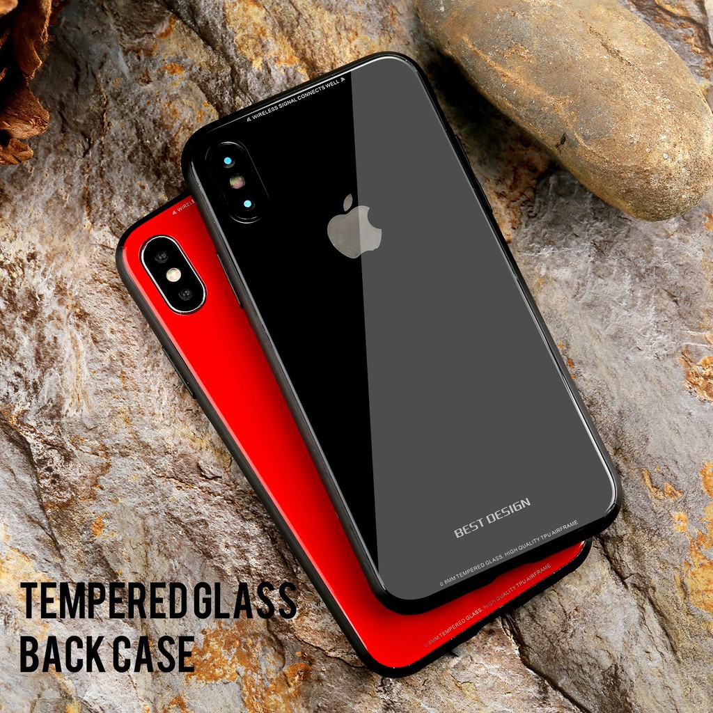 Nxe Pattern Printing Gradient Ramp 9h Glass Back Tpu Edge Hybrid Case For Iphone 8 Plus 7 Plus 5 5 Inch Red Black Celare Shop