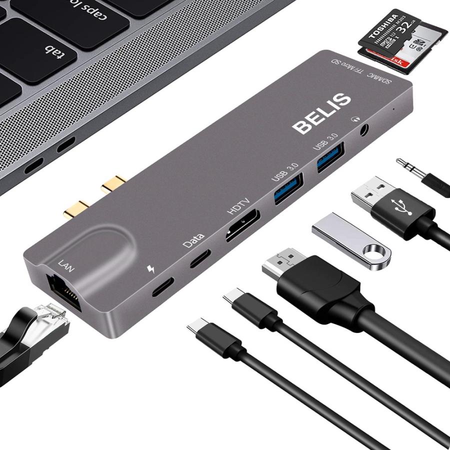 Usb C ハブ 9in2 Usb Type C ハブ Usb C ドッキングステーション ウルトラスリムmacbook Pro 2019 2018 2017 2016 Macbook Air2019 2018 対応4k Hdmi出力 Pd 高速充電対応 有線lan Usb3 0 ハブ Sd Micro Sd カードリーダー マイクロ タイプc Hdmi 変換 アダプタ